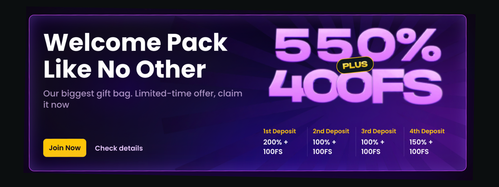 New players can claim a welcome package worth 550% up to $4,000 plus 550 free spins, spread across the first four deposits.