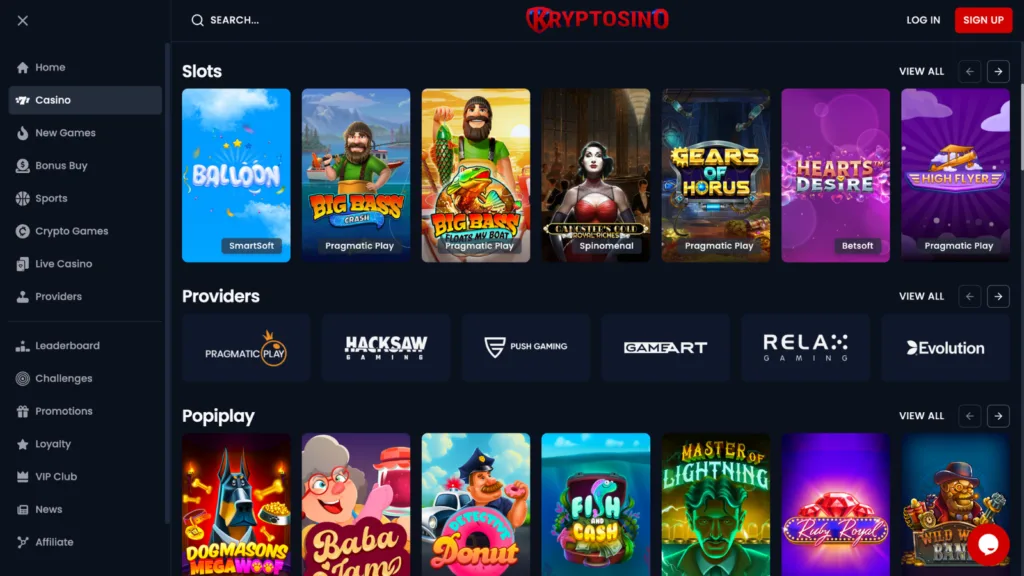 Players at Kryptosino can indulge in a diverse array of gaming options, including:
